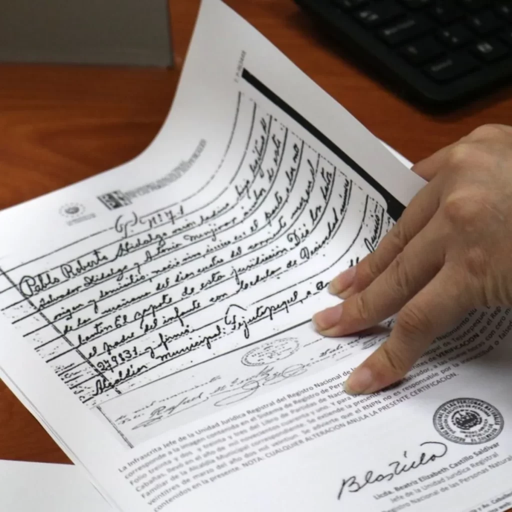 • Partida certificada con las visaciones oficiales necesarias (incluida Relaciones Exteriores).